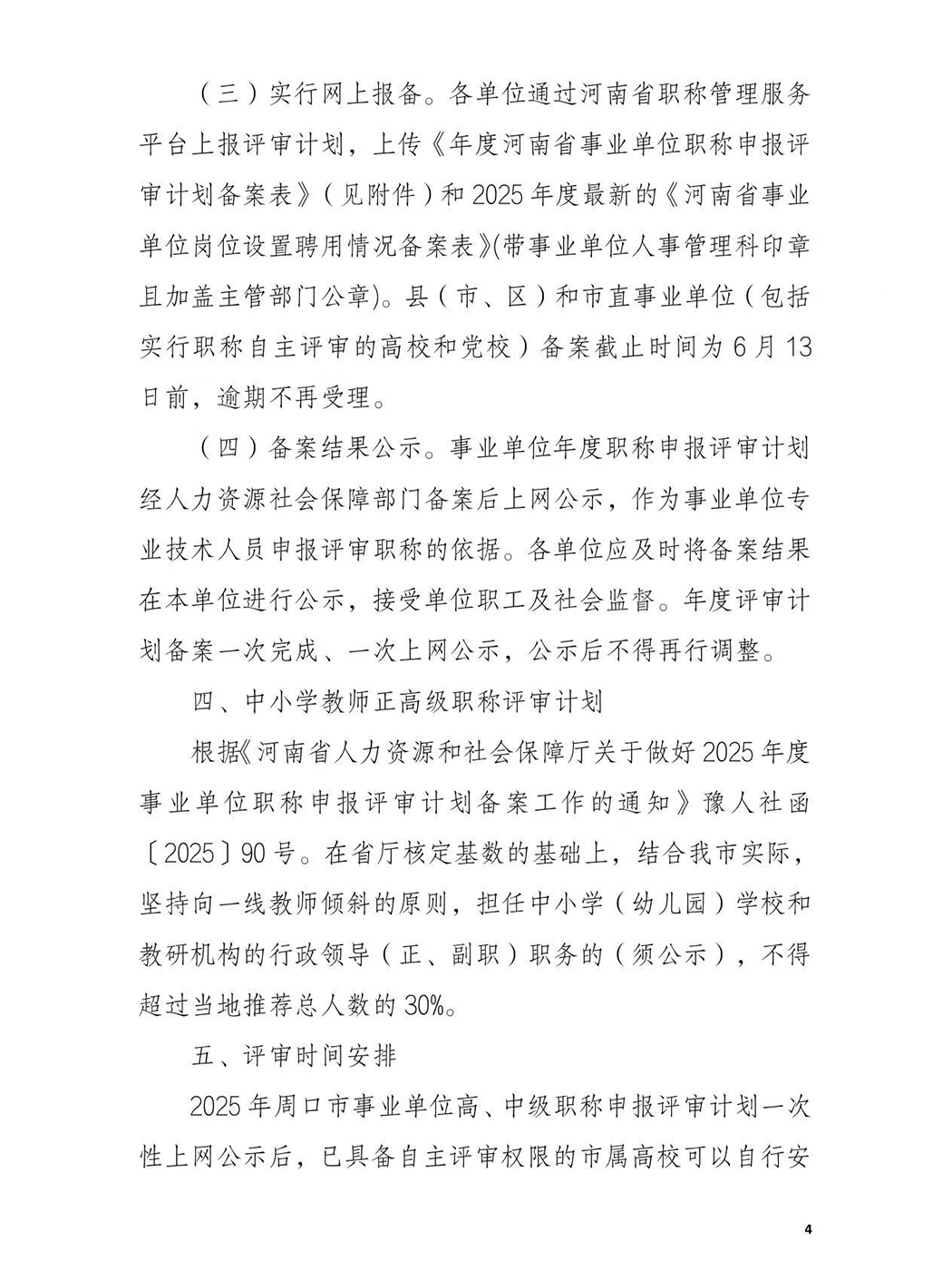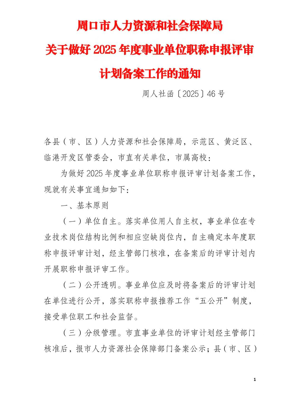 周口市人力资源和社会保障局关于做好2025年度事业单位职称申报评审计划备案工作的通知(2026-01-08)
